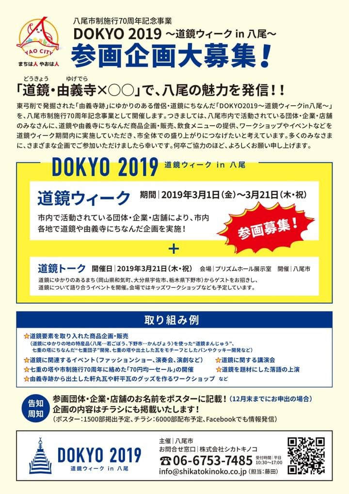 「DOKYO2019~道鏡ウィーク in 八尾~」を開催します。